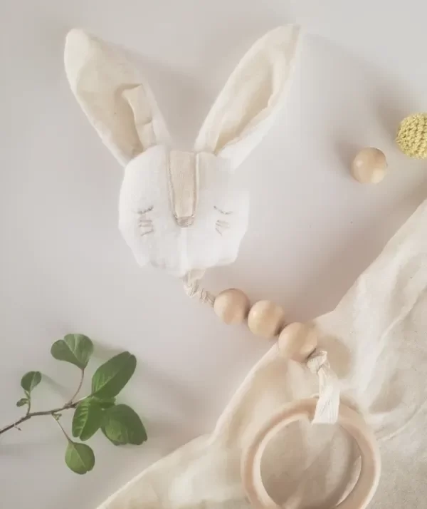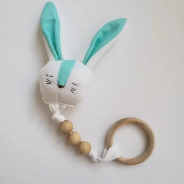 El regalito ideal para un nacimiento. Más dulce no vas a encontrar. Acompañará a tu bebé desde los primeros días hasta transitar la salida de dientitos. Porque es ideal para jugar como para usar de mordillo. Realizado en polar, lienzo y madera. Bordado a mano.
