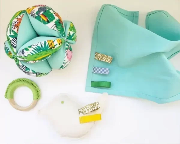 Cuando tu peque empieza a mostrar interés por lo que le rodea: estira sus manos, gira la cabeza a mirar alrededor, busca a su mamá o papá, agarra su propia ropa queriendo llevarla a la boca… Esto suele ocurrir una vez pasados los 3 meses. Es ideal que sean materiales de fácil manipulación y completamente seguros colocados al lado del bebé, a los que pueda llegar cuando tenga interés, que pueda agarrar, chupar y estrujar sin peligro.