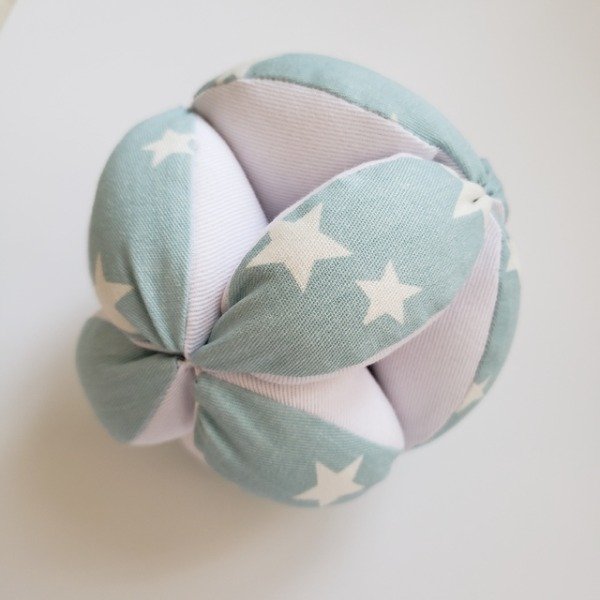 Esta pelota está heca con telas de algodón y está recomendada a partir de los 4 meses. Cuenta con una estructura que hace sencillo el agarre y promueve el gateo de los más chiquitos, ya que ruedan despacio.